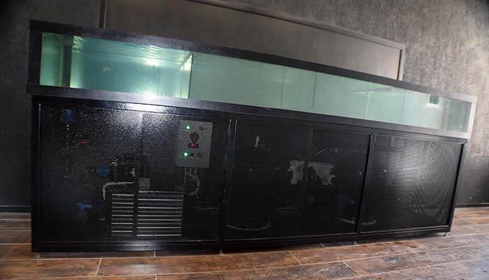 Мы знаем, как создать для всех водных животных, используемых в пищу, начиная от раков и заканчивая мидиями и морскими ежами, условия в которых они будут прекрасно жить годами. И поэтому мы знаем абсолютно точно, чем в системе фильтрации аквариумной системы можно пожертвовать, если животных нужно продержать в хорошем состоянии несколько дней, несколько недель или несколько месяцев.